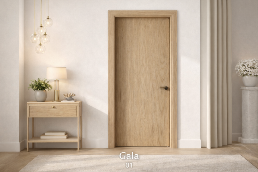 Gala (Code 01) : Porte élégante en bois naturel. Gala est une porte raffinée et contemporaine conçue pour sublimer tout intérieur.